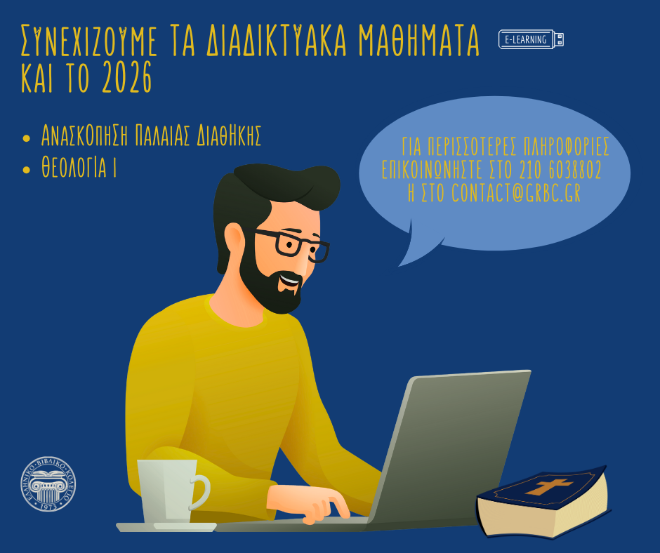 Στο Ελληνικό Βιβλικό Κολέγιο συνεχίζουμε το εκπαιδευτικό μας ταξίδι και το Εαρινό Εξάμηνο του 2026, προσφέροντας δύο νέα online μαθήματα που θα σε βοηθήσουν να εμβαθύνεις ακόμη περισσότερο στη γνώση του Λόγου του Θεού και να ενισχύσεις την πορεία σου στη διακονία.